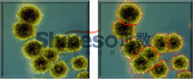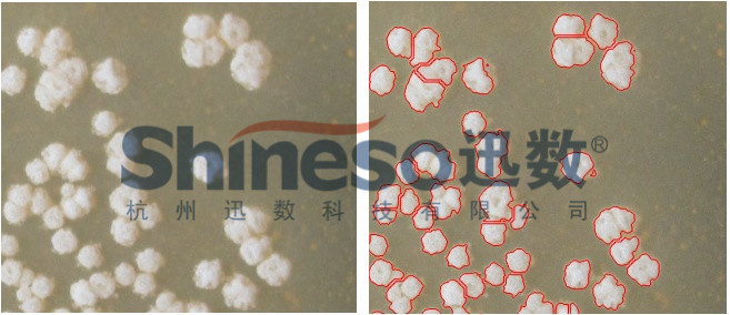 菌落計數(shù)的精度易受雜質(zhì)干擾,如培養(yǎng)基中的不溶物、氣泡、瓊脂凝塊、劃痕等。通過光照效果的調(diào)整、形態(tài)學過濾、色澤限制,可有效提高菌落圖像分割、識別的精度。