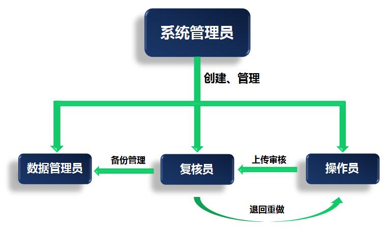 “系統(tǒng)管理員、數(shù)據(jù)管理員、操作員、復核員”四重系統(tǒng)架構(gòu),分設職能與權(quán)限,確保數(shù)據(jù)信息的安全、完整和真實。